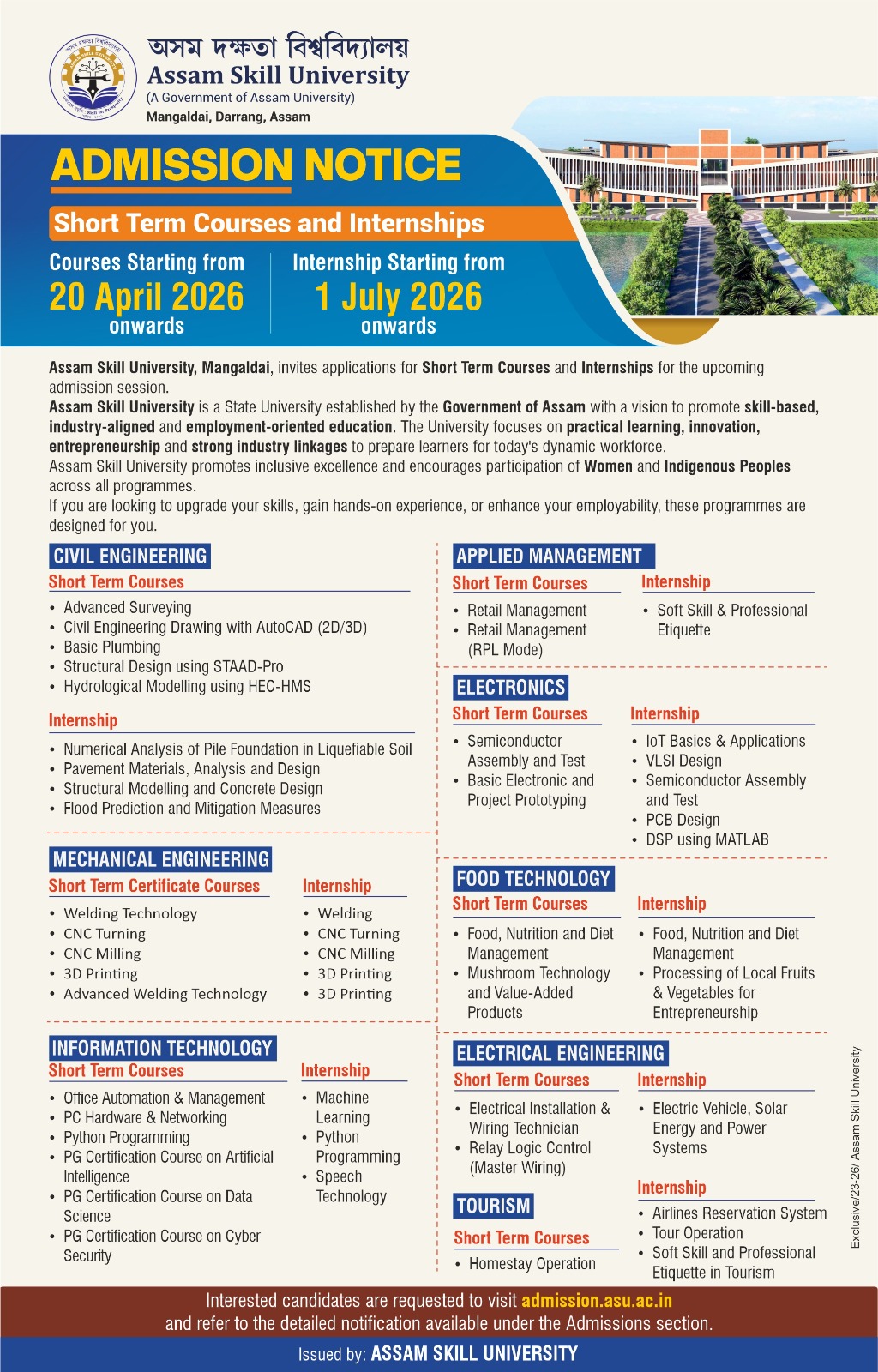 The ASU provides all the facilities including Library with well equipped reading room, Indoor & outdoor games, Gymnasium, Hostel, Canteen etc.