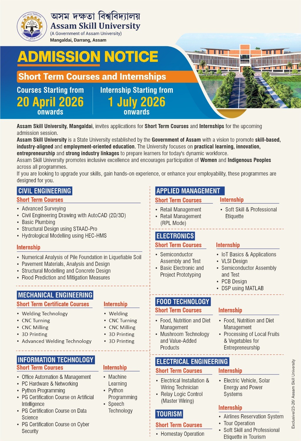 The ASU provides all the facilities including Library with well equipped reading room, Indoor & outdoor games, Gymnasium, Hostel, Canteen etc.