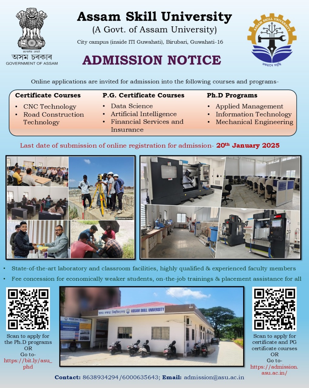 Admission Notice for Ph.D Programs, P.G Certificate Course and Certificate Course
